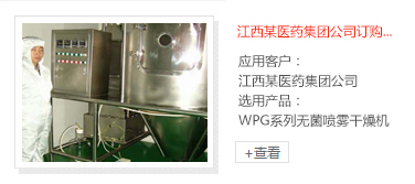 近年來我公司在食品、調味品、中藥、生物制品、化工和融溶造粒等行業中發展較快、根據生物的熱敏性、吸濕性、易結塊、易粘壁的特點,進行特殊設計,取得了較高的知名度。公司常年備有各類試驗樣機供客戶來人帶料進行工藝試驗。